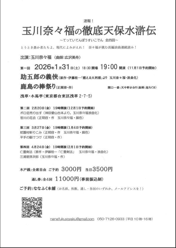 [日程] 2026年 1月31日 19:00:開演 2月20日 19:00:開演 3月27日 19:00:開演 4月24日 19:00:開演